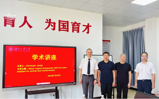 2024年7月24日下午,德国杜塞尔多夫大学的Christoph Janiak教授应邀来我院进行了一场精彩的学术报告,地点在崇材楼318号教室。此次报告的主题为“金属有机框架材料(MOFs)在水吸附和循环热转化中的应用”。